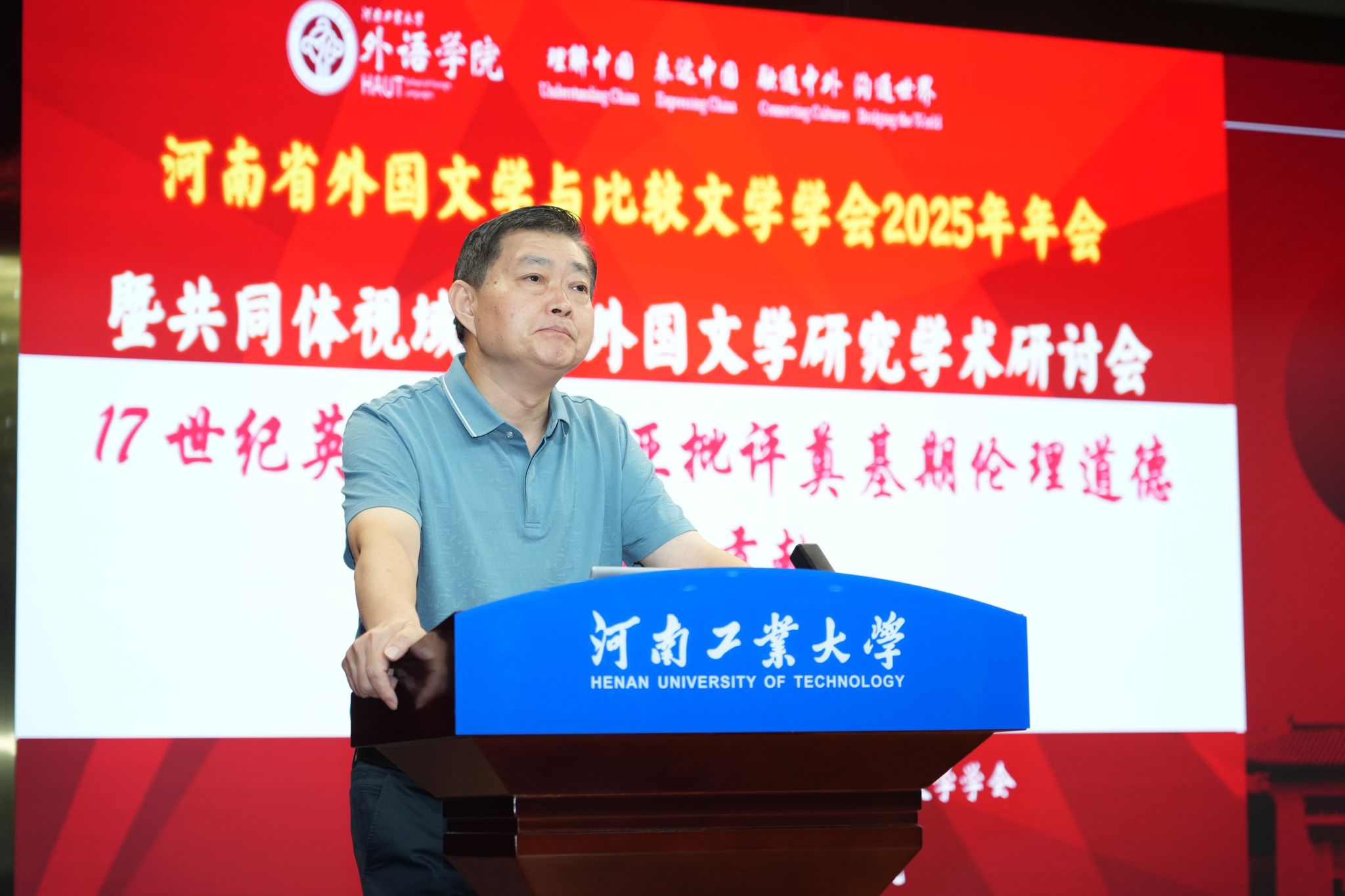 国家万人计划领军人才、河南省外国文学与比较文学学会会长、《河南大学学报》编辑部主任、主编李伟昉教授以《17世纪英国莎评奠基期伦理道德批评的贡献》为题作主旨发言。他指出,17世纪是莎士比亚批评的奠基期,这一高起点的奠基期成为莎士比亚走向世界经典作家的重要发端。本·琼生和德莱登为17世纪英国莎评提供的极具价值的批评文献,成为后世莎评无法绕开的重要话题和批评范式。诗性正义的伦理道德批评是最能彰显莎评奠基期的重要贡献之一,值得再审视、再评估。
