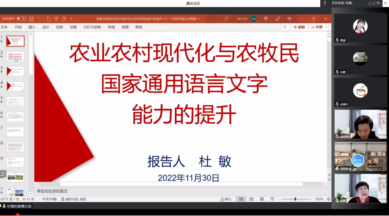 ,以“农业农村现代化与国家通用语言文字能力的全面提升”为题带来一场精彩学术报告。会议由副院长葛丽萍主持,语言教学法团队和语言学团队成员、捷克论坛