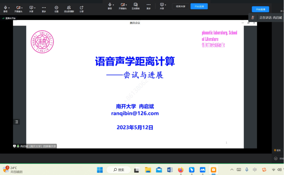 2023年5月12日,南开大学冉启斌教授应邀以《语言声学距离计算:尝试与进展》为题带来了一场精彩的学术讲座。来自捷克论坛
