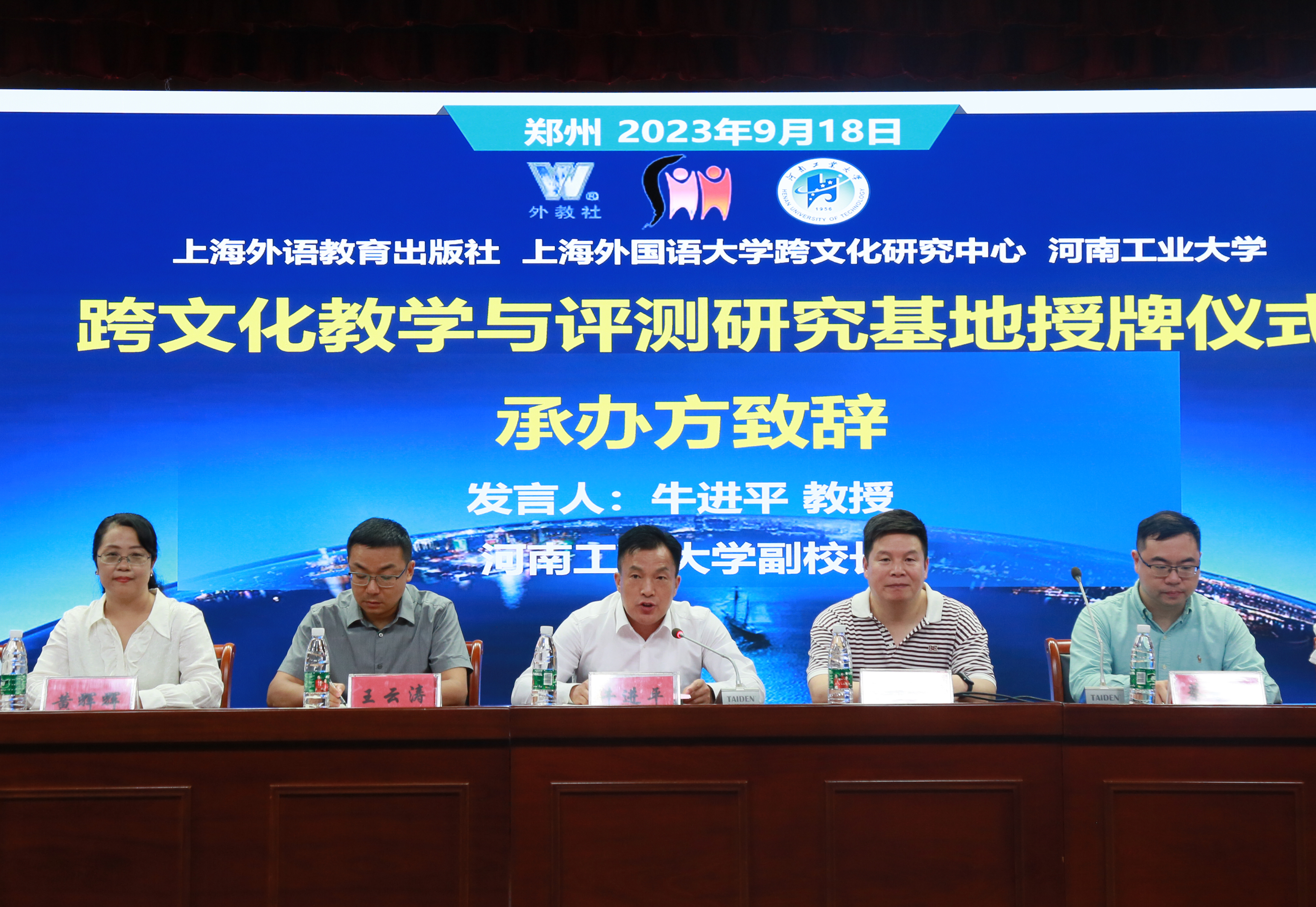 牛进平副校长代表学校进行致辞。他对上海外语教育出版社的大力支持与信任表示感谢,对跨文化教学与评测研究基地的成立表示祝贺,并对学校和捷克论坛 的基本情况进行了简要介绍。他指出,跨文化教学与评测研究基地的成立,标志着捷克论坛 外语跨文化教学研究迈上了一个新台阶,承载了三方积极响应国家战略、顺应外语学科时代变革、推进跨文化国际传播人才培养的共同愿景。他要求研究基地充分发挥“孵化器”作用,为广大外语学习者提供一个提升能力、学以致用、放飞梦想、成就人生的平台;他希望捷克论坛 的同学们增强跨文化能力培养,不负韶华、砥砺前行,把青春和热血奉献给中华民族伟大复兴和中国式现代化建设;他要求基地主动服务国家战略,将基地打造成服务跨文化人才培养的“靓丽的名片”,为增强中华民族传播力影响力贡献力量。