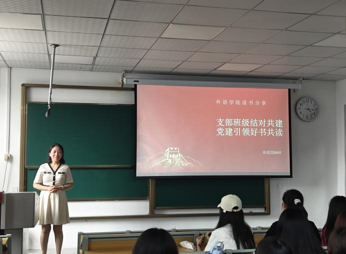 于本月成功举办了以“支部班级结对共建,党建引领好书共读”为主题的读书分享活动。此次活动旨在通过党支部的引领作用,激发学生的阅读兴趣,提升学生的综合素养,同时加强党支部与学生之间的联系,营造浓厚的学术氛围。6月11日下午,英语2304班学业导师朱奕霏带领英语2304班28位学生在嵩山路教学楼1314教室开展了以“支部班级结对共建 党建引领好书共读”为题的读书分享会。