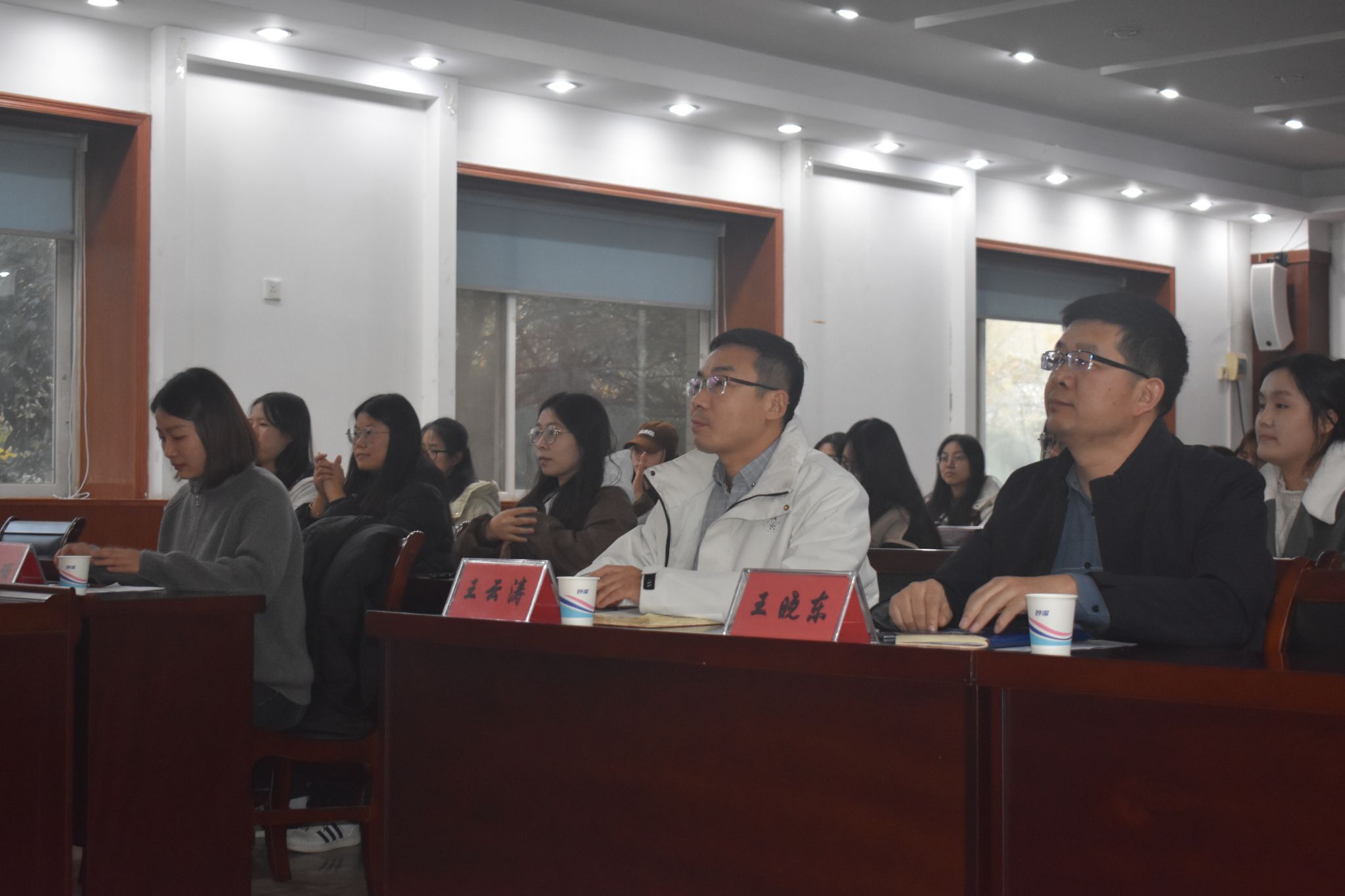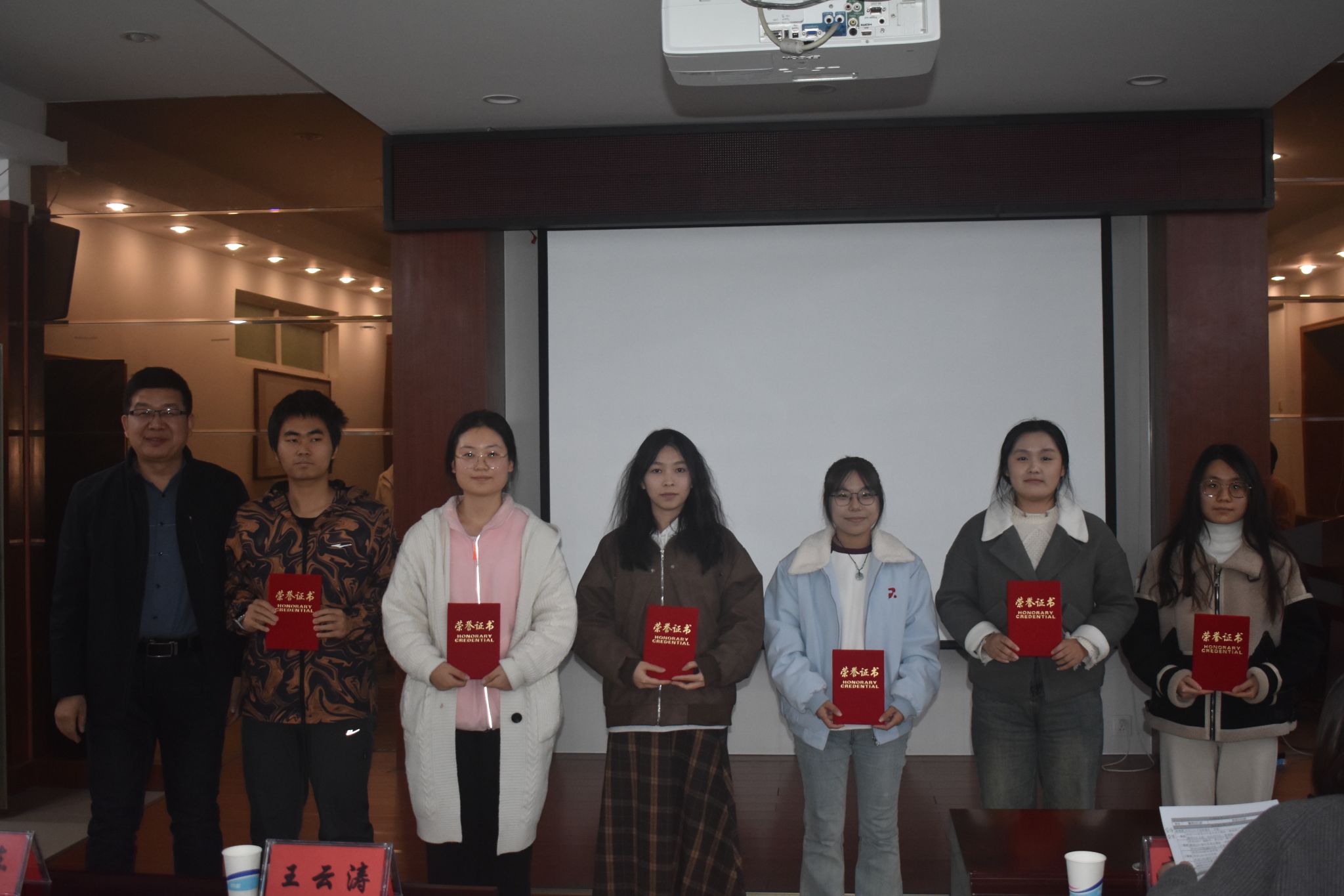 表彰环节,由郭珊珊宣读2024年暑期社会实践表彰决定。王云涛和王晓东分别为社会实践优秀团队和优秀个人颁奖。