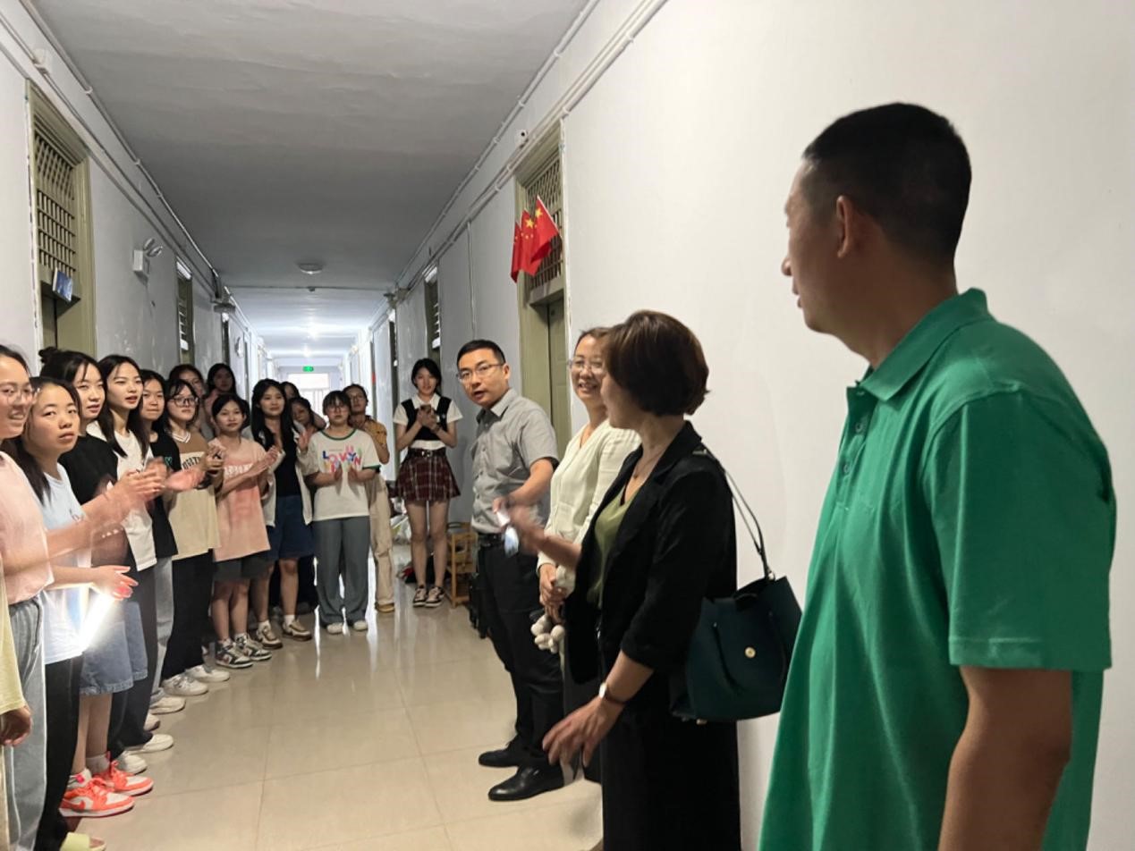 走访慰问暖人心。当天傍晚7时许,学院党委书记王云涛、院长黄辉辉、副院长葛丽萍和辅导员们一起深入学生宿舍走访,查看学生行李安顿情况,了解学习生活困难和思想状态,并叮嘱大家要及时调整心态,尽快适应新环境,做好后续考试和暑期社会实践准备,以崭新的风貌迎接学习生活新阶段。