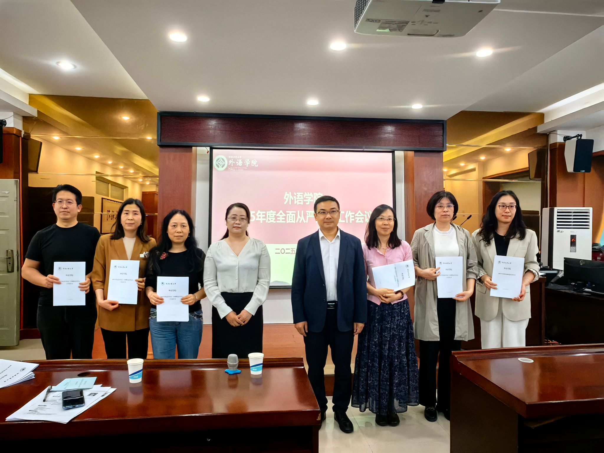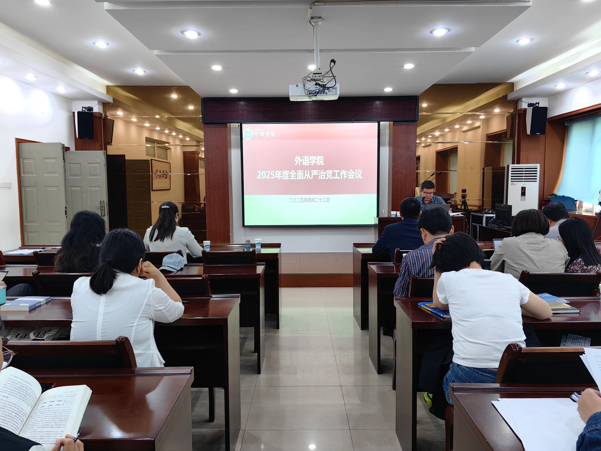 在博闻楼5225会议室召开2025年全面从严治党工作会议。学院领导班子成员、全体党员、全体科室、系部负责人参加,会议由学院党委副书记、纪委书记王晓东主持。