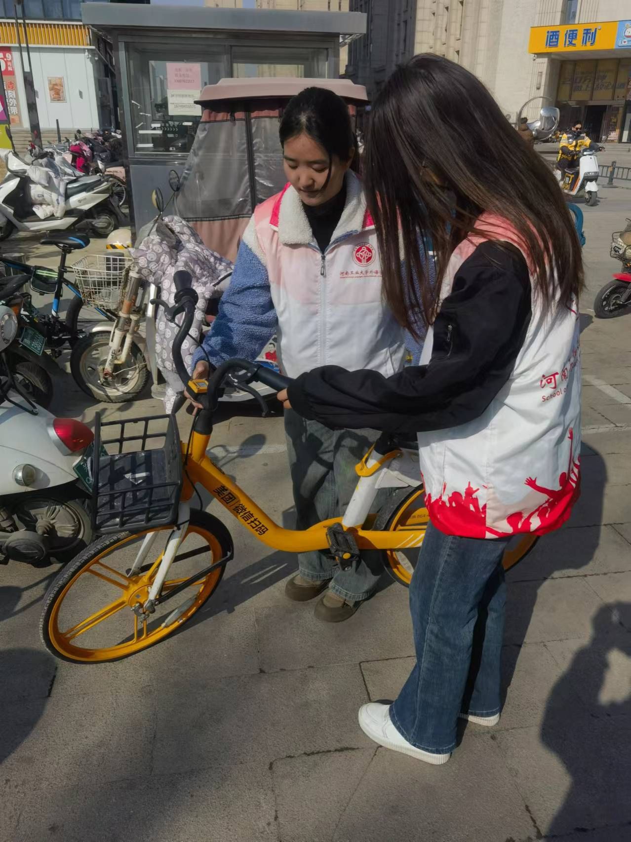 志愿者走上街头开展“让共享单车‘归位’”主题志愿服务活动,活动现场,身穿红马甲的志愿者将共享单车逐一摆放整齐,提醒过往的市民停车入位,并将地上的垃圾给清理干净,营造文明社会新风尚。在活动中遇到前来停车的市民,志愿者们也礼貌接待,耐心等市民锁好车、拿好个人物品后才上前接过单车进行摆放。