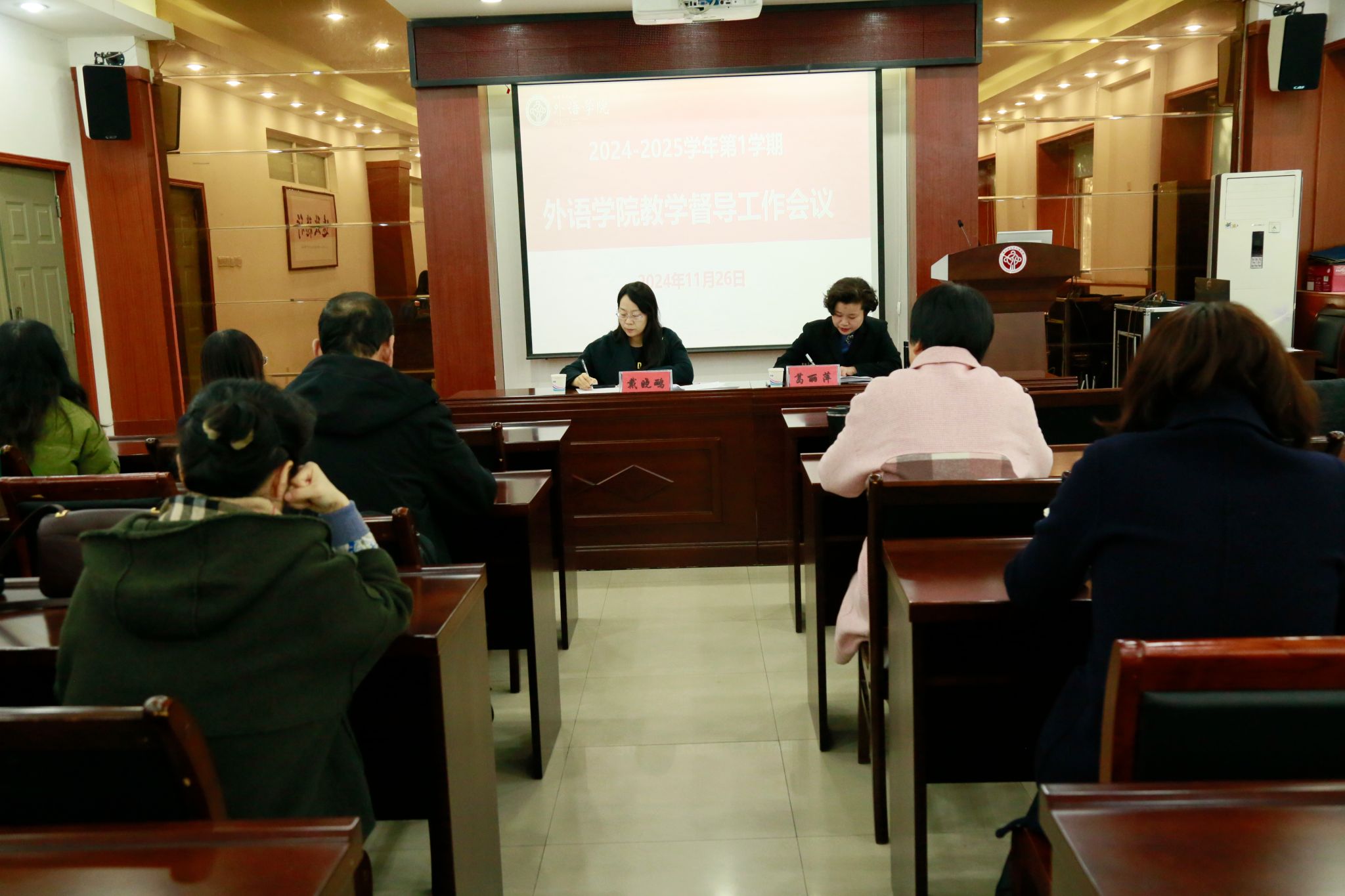 在5225会议室先后召开了教学督导工作会议、教师座谈会和学生座谈会。校级教学督导戴晓鹂老师、学院党委副书记王晓东、副院长葛丽萍、学院全体教学督导、各系部负责人、各专业教师以及各年级学生代表参加了会议,会议由副院长葛丽萍主持。