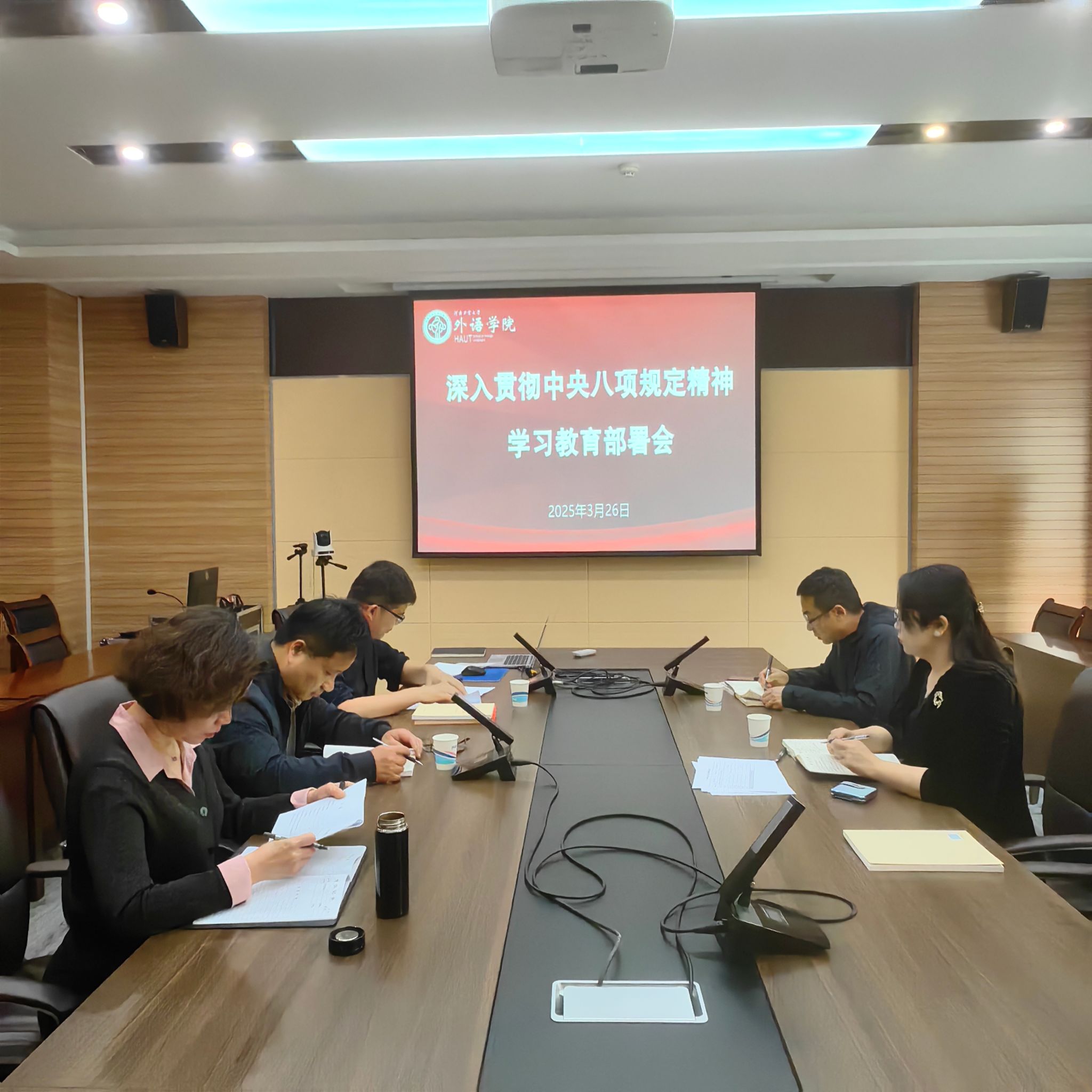 会上,学院党委书记王云涛传达了学校党委常委(扩大)会议暨党的建设工作领导小组会议精神,传达了关于学习习近平总书记关于深入贯彻中央八项规定精神学习教育的重要讲话和重要指示精神,领学了学校《关于在全校党员中开展深入贯彻中央八项规定精神学习教育的工作方案》。王云涛对学院深入贯彻中央八项规定精神学习教育工作进行了安排部署。