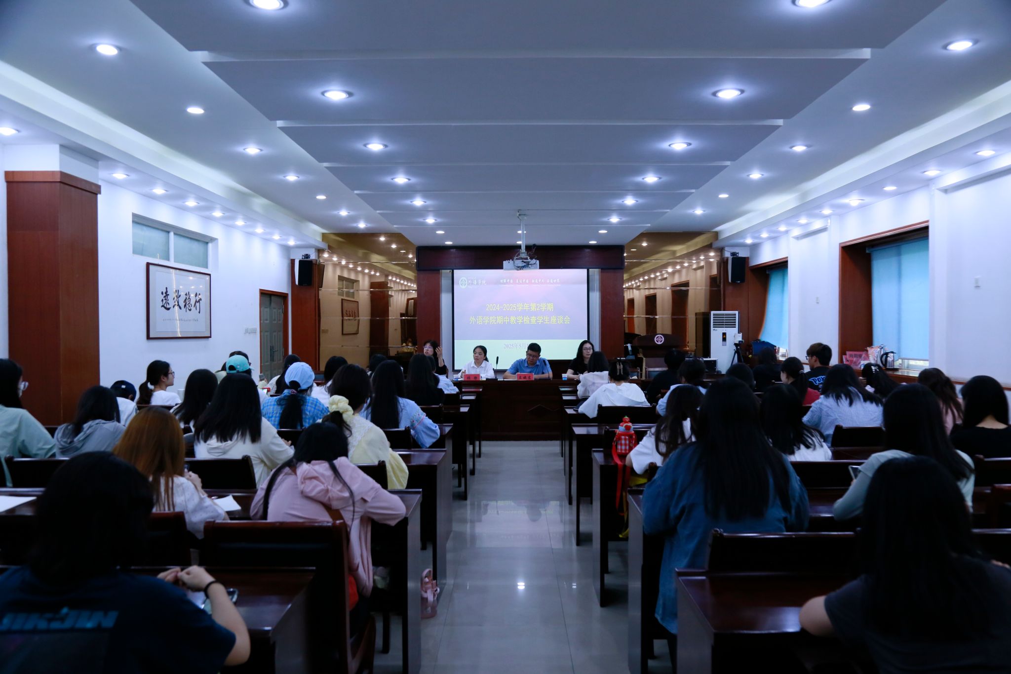 会议分教师评学和学生评教两个环节。教师评学环节以“数智时代创新人才培养”为主题,英语系、翻译系教师充分肯定学生在学习纪律、任务完成度等方面的积极表现,同时提出需强化数智素养、课堂互动深度及自主学习能力等。与会教师围绕学科专业AI赋能、数智类课程体系建设,智慧课程资源建设、教学设施保障等重要议题展开探讨并提出了宝贵的意见和建议。