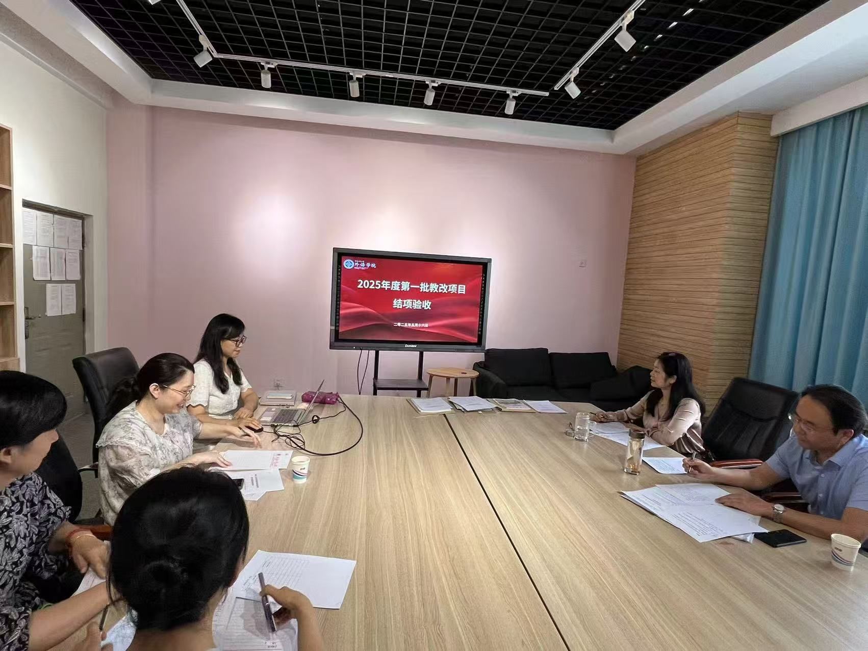 于5月16日在5239会议室组织教学评审委员会对2023-2024年立项的校、院级本科教改项目开展了评审验收工作。共5项教改项目参与此次结项验收。由教科研经验丰富的成汹涌教授和鲍成莲副教授担任本次结项验收评审专家。