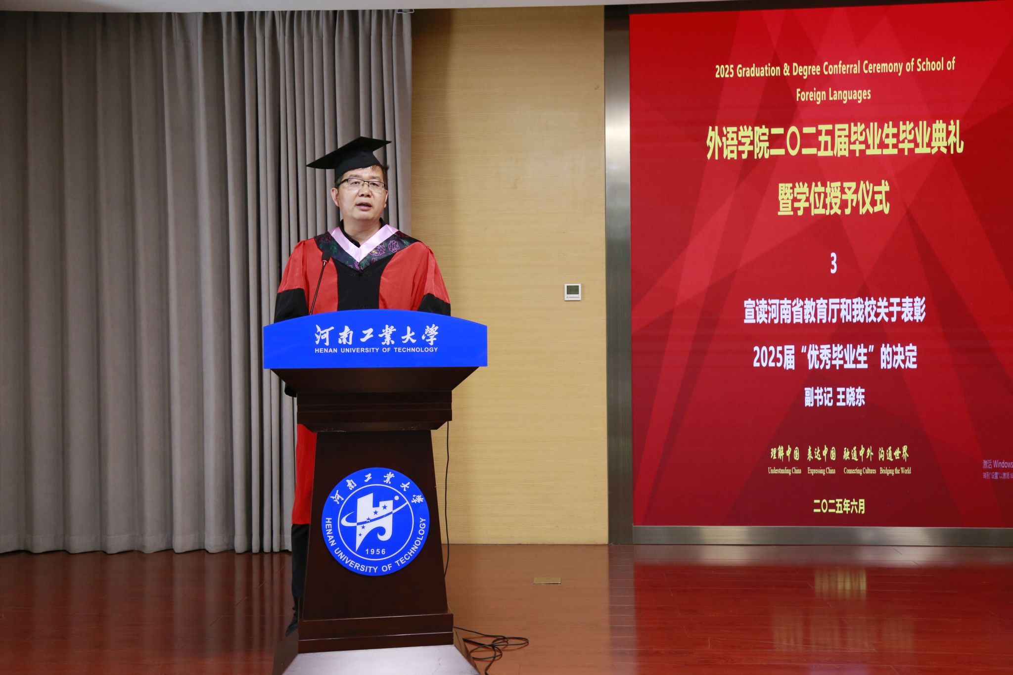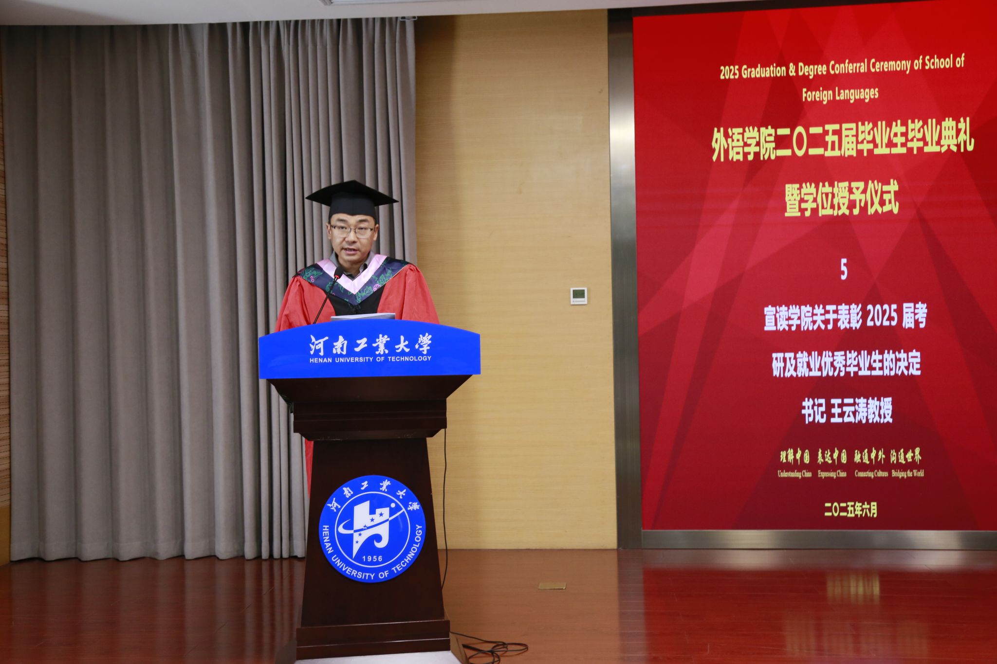 2025届毕业典礼在D205隆重举行,学院领导班子成员、教师代表、研究生导师、2025届毕业班班主任、毕业生及毕业生家长代表参加典礼。典礼由学院党委副书记王晓东主持。