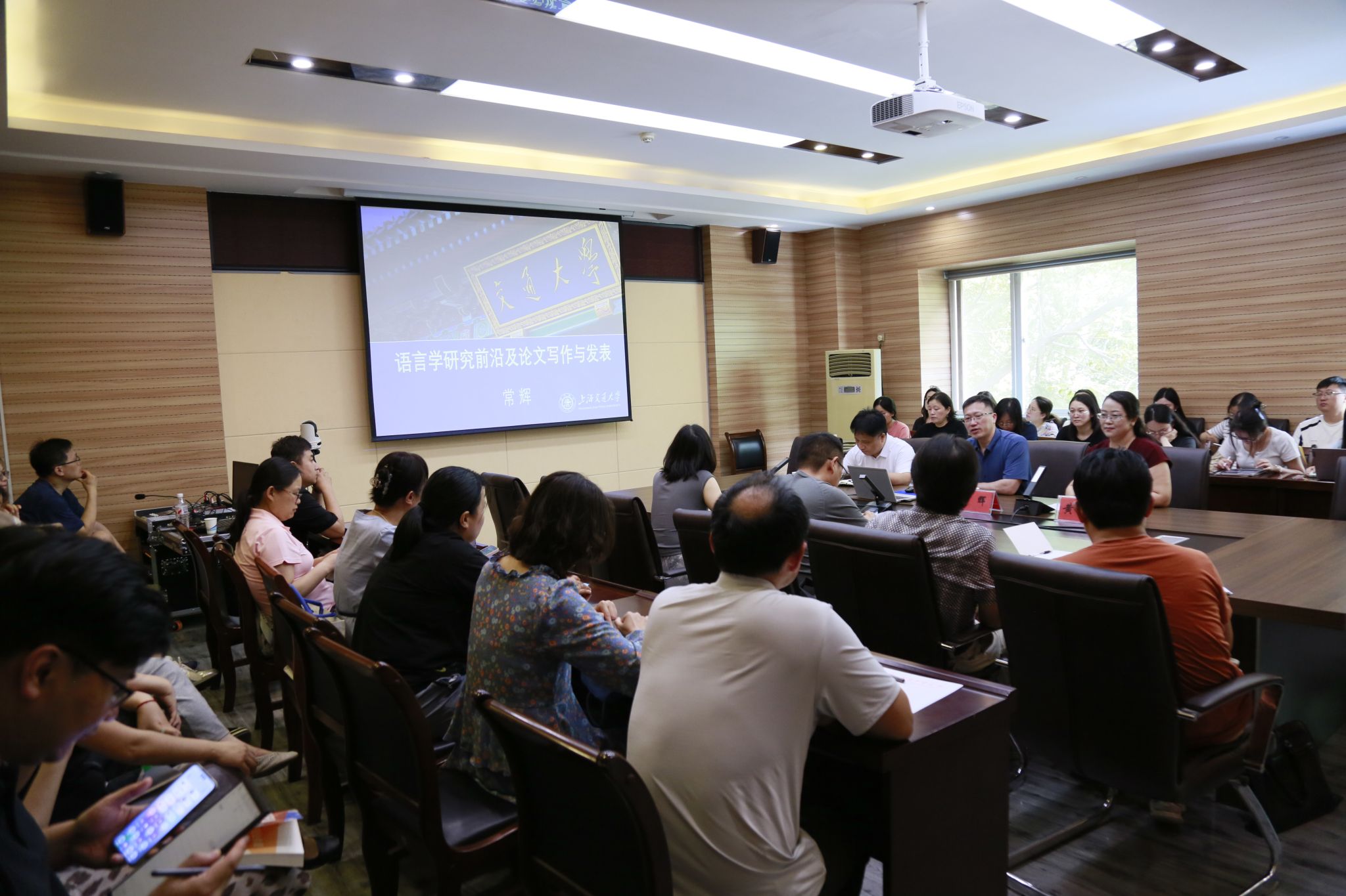 ,在5231会议室作“语言学研究前沿及论文写作与发表”专题讲座。讲座由院长黄辉辉教授主持,学院班子成员、学科骨干、青年教师及研究生共同聆听。