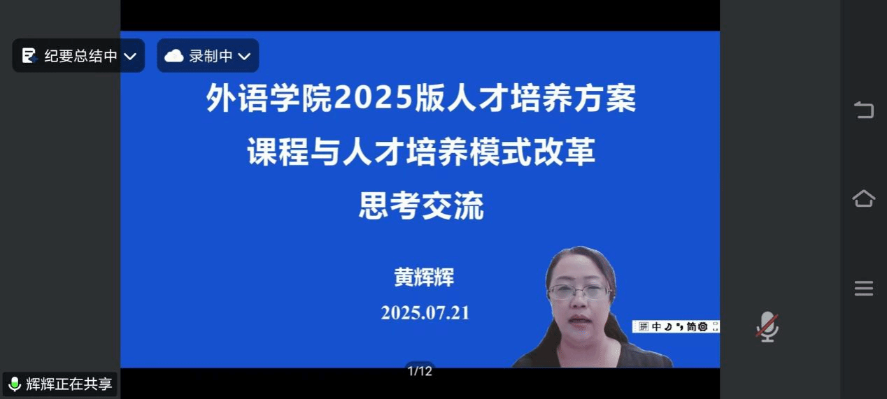 首先,院长黄辉辉围绕2025版人才培养方案与人才培养模式改革指出:外语教师需把握国家对外语学科的当前布局与未来方向,紧密对接国家需求与学科使命。公共外语教学应服务“四新”建设(新工科、新医科、新农科、新文科),以语言为载体、专业为依托深化融合。外语专业则要着力培养“外语+”高素质复合型人才,一体化推进外交、外事、外宣、外贸等涉外领域人才培养。她强调课程内容需落实“五融入”(思政育人、跨文化教育、人工智能、区域国别教育、学术与职业发展教育);课程建设需统筹语言与内容、理论与实践、技术与人文三个维度;教学方法应注重情境、案例、模拟与实战,任务设计需体现高阶性、综合性、挑战性、合作性、真实性与成果性,致力培养高度契合国家战略、地方发展与学科使命的实战型人才。