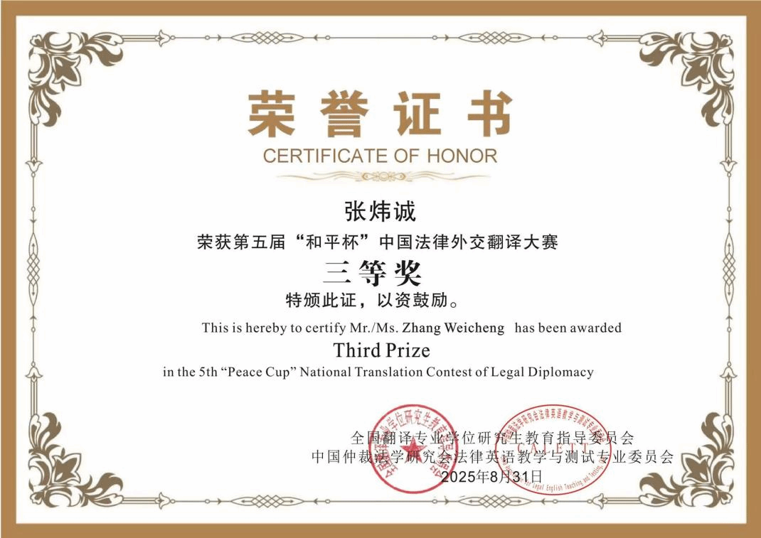 教师杜巧阁指导下,凭借扎实的英语功底与深厚的法律翻译素养,在大赛中荣获三等奖,展现捷克论坛