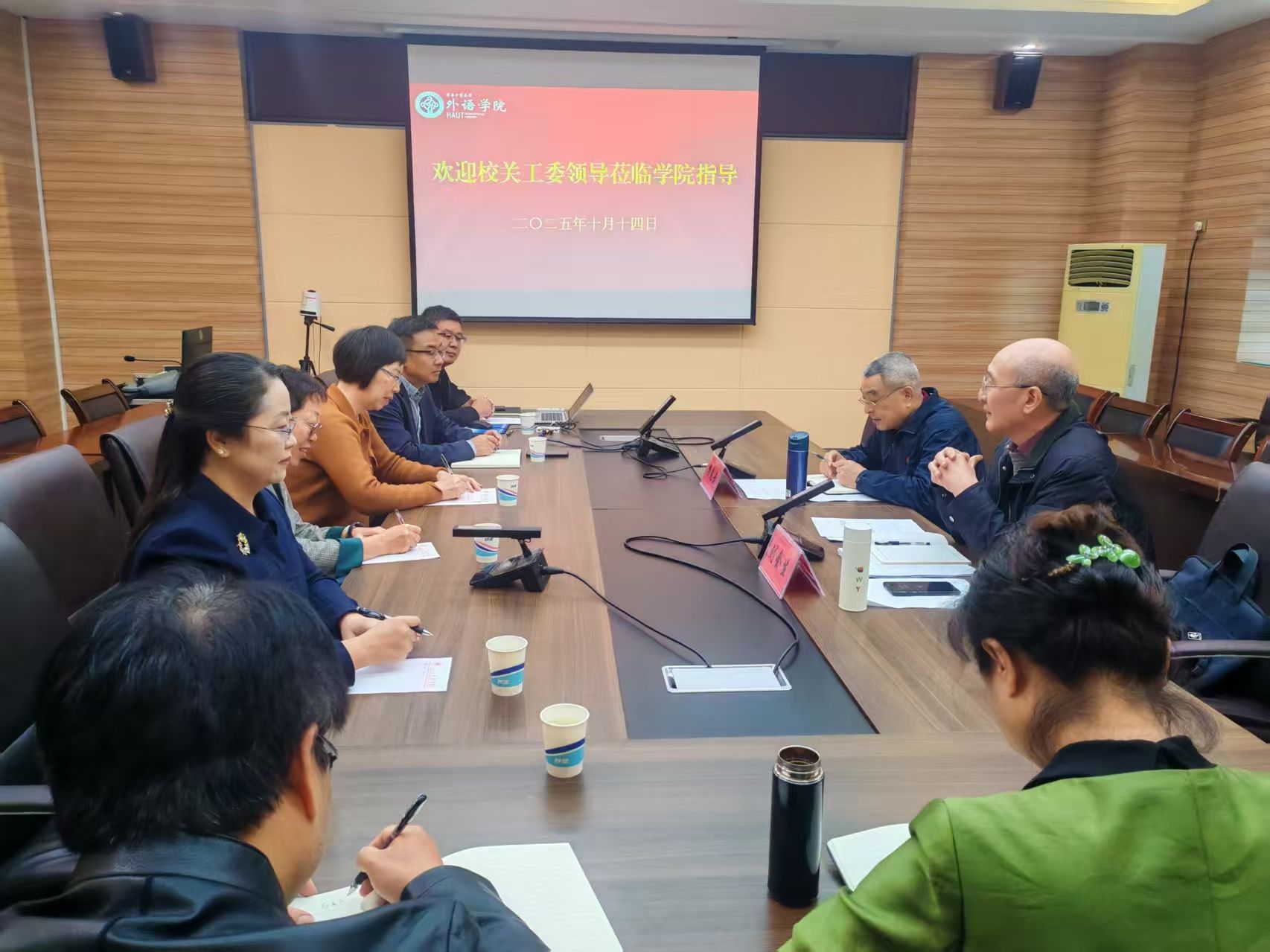 关工委建设工作给予了充分肯定,认为学院关工委工作基础扎实、特色鲜明、成效显著,在品牌活动打造等方面形成了良好经验。希望学院进一步深刻认识“五好”二级关工委建设的重要性,对标对表科学谋划系统建设;要进一步做好《读懂中国》、青蓝工程等重点工作;要围绕中心开展工作,服务学校和学院大局;要遵循“尽力而为、量力而行”的原则,充分发挥“五老”育人作用;要充分发挥学生委员桥梁作用,及时沟通反馈,提升协同育人质效;要加强“一院一品牌”建设,常态化开展特色品牌活动,培育高素质外语人才。