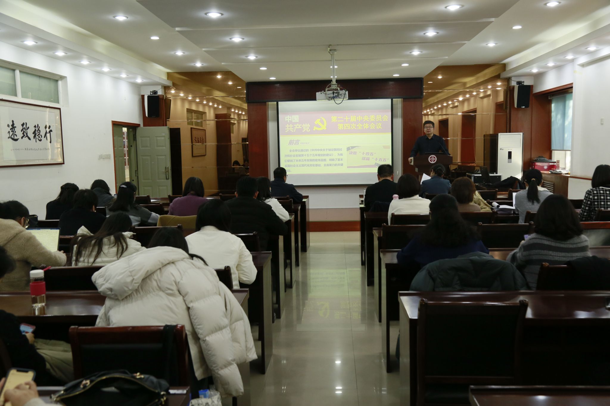 整场宣讲脉络清晰、重点突出,既有理论高度又有实践温度。在场教职工认真聆听,纷纷表示受益匪浅。大家一致表示,将以此次宣讲为契机,持续深化对全会精神的学习理解,把思想和行动统一到党中央决策部署上来,在教学科研中勇挑重担,以实际行动为"十五五"规划实施和学院事业发展贡献力量。(撰稿:刘振 摄影:洪霞 审校:王晓东 审核:王云涛)