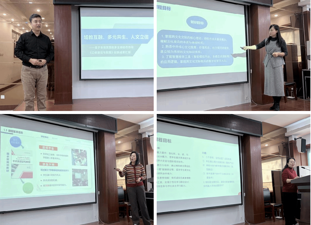 五位教师现场展示并汇报了课程设计方案,曾教授结合自身深厚的教学研究积淀和丰富的教学竞赛经验,对每位教师进行了细致到位的一对一点评。与会教师就课程建设、教学设计及教学竞赛等问题积极交流,研讨氛围热烈。