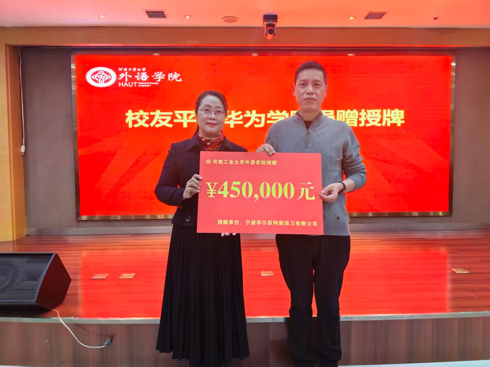 “华尔跃特奖助学金”捐赠设置暨第一届颁发仪式在莲花街校区学术交流中心D102会议室举行。校纪委书记、监察专员张玉安出席会议并致辞,宁波华尔跃特剃须刀有限公司创始人平锦华、楚秋,校友与基金工作办公室主任马武刚、就业创业中心主任周志强、学院领导班子以及师生代表参加活动。签约仪式由学院党委副书记王晓东主持。