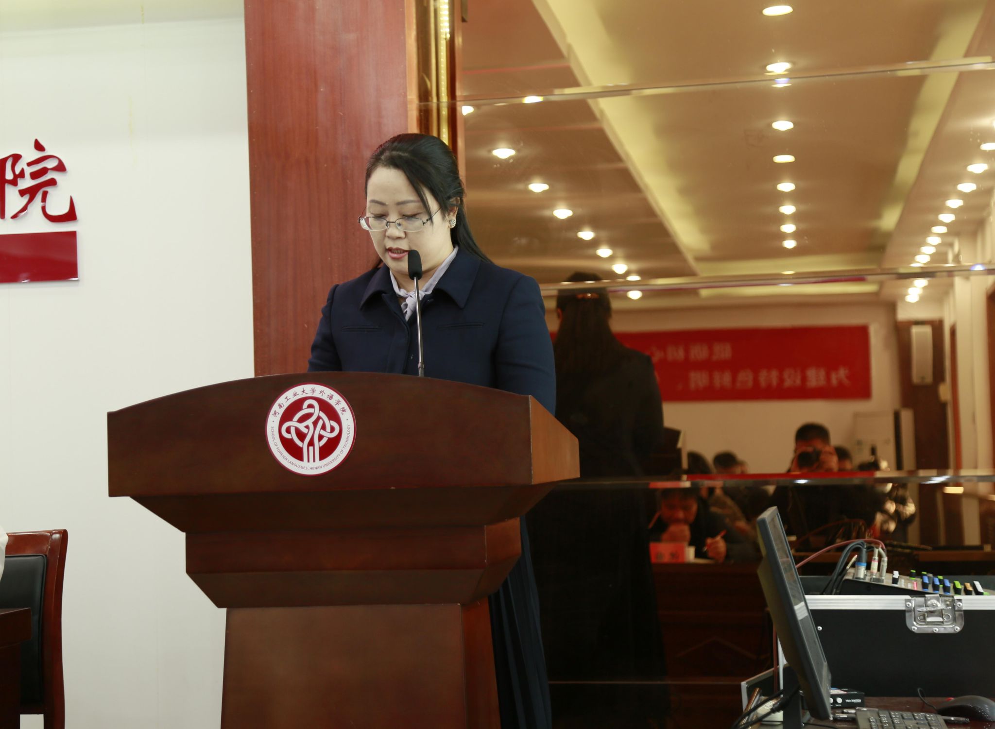 院长黄辉辉代表学院领导班子作述职报告,围绕党建引领、教学改革、学科建设、师资培训、人才培养、科研创新与社会服务等核心工作,全面总结了学院2025年度的发展成效。报告指出,在学校党委、行政的坚强领导下,学院凝心聚力、真抓实干,各项事业实现跨越式发展:学科与专业排名稳步提升,英语、翻译专业跻身全省前列;师资队伍建设成果显著,教师在国家级、省级教学竞赛中屡获佳绩;课程建设实现突破,成功获批省优质国际化课程,填补相关领域空白;科研创新能级大幅提升,年度获批国家社科基金项目数量创历史新高,其中中华学术外译项目实现学校该类项目零的突破,著作出版、论文发表及科研经费均创新高;人才培养质量持续提升,本科生升学率位居全校文科学院首位,学生在各级各类竞赛中斩获多项奖励。黄辉辉表示,成绩的取得离不开全院教职工的同心同德与辛勤付出。她强调,当前人工智能浪潮带来新挑战,2026年作为“十五五”规划开局之年,希望全体教职工以定力、智慧与锐气应对变革,在危机中育新机、于变局中开新局,携手共创学院发展新局面。