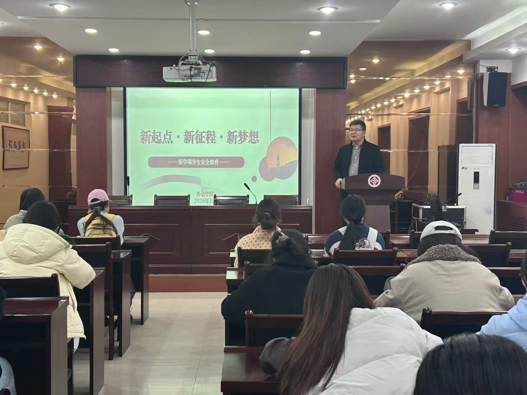 会上,学院学工办主任郭珊珊、团委书记陈卓分别围绕春季学期学习生活规划、校规校纪解读、消防安全知识、诈骗防范技巧、宗教政策法规等内容开展专题宣讲。宣讲过程中,引导同学们科学合理安排学习生活,严格遵守校规校纪,时刻绷紧安全之弦,坚决杜绝侥幸心理,真正将安全规范内化于心、外化于行,切实做到知安全、懂安全、守安全。