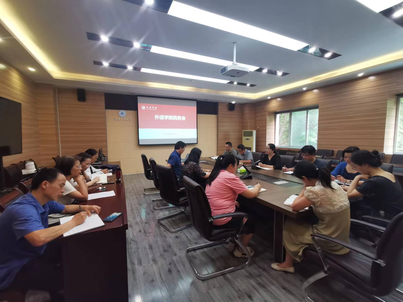 于9月2日下午在5231会议室召开新学期院务会议,安排部署新学期工作,学院领导班子、各系部科室主任及党支部书记参会,会议由院长黄辉辉主持。