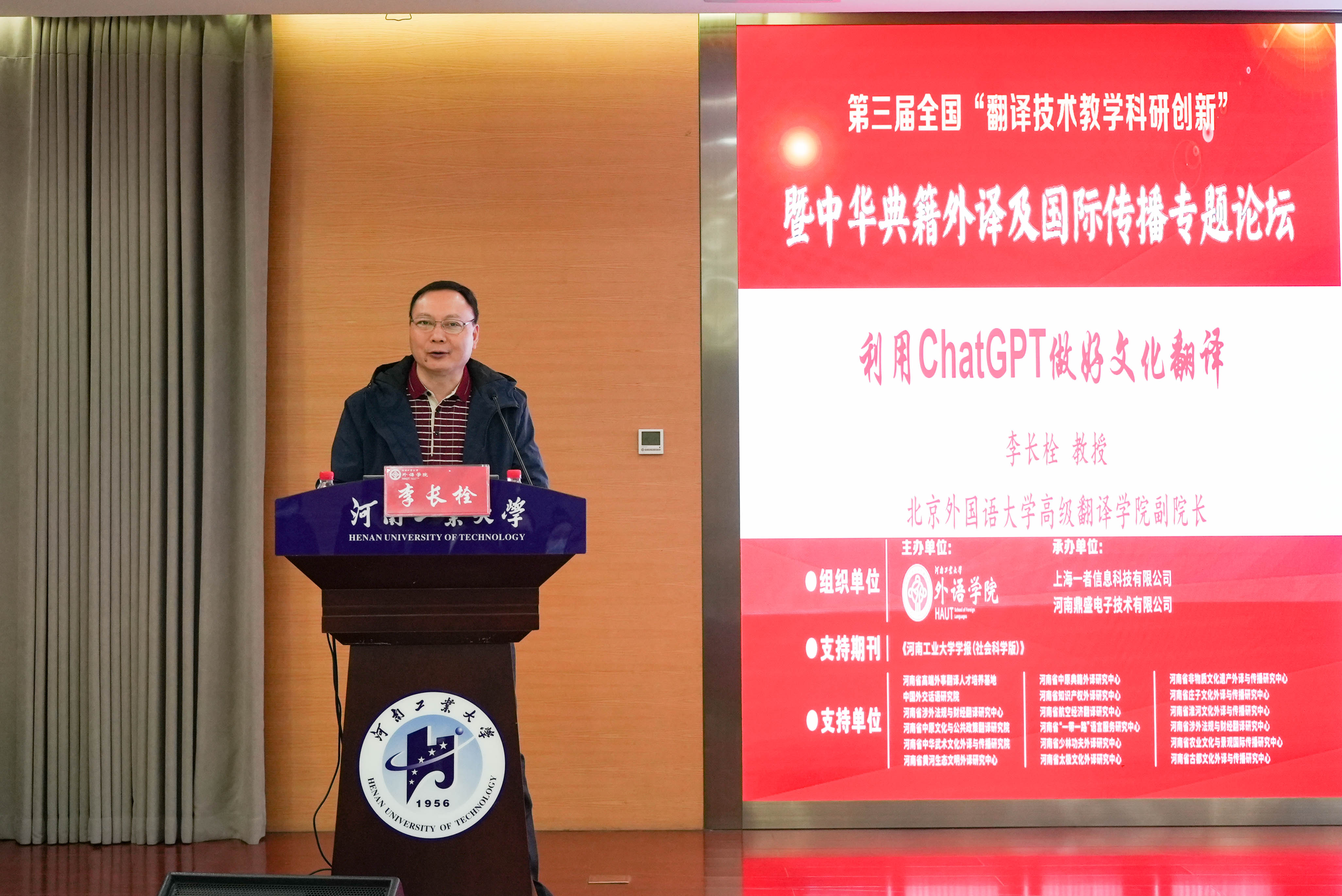 北京外国语大学高级翻译学院副院长李长栓教授主旨报告题目为《利用ChatGPT做好文化翻译》。他认为,ChatGPT的出现为汉英翻译实践提供了有用工具。鉴于ChatGPT的专长是英语语言编辑,可以在机器翻译或ChatGPT翻译的基础上,进行初步修改,确保意思准确,然后利用ChatGPT进行语言润色,生成自然地道的译文,从而大大减轻甚至省略母语审校的工作。他在报告中利用具体例子,说明了ChatGPT在文化翻译方面的运用。