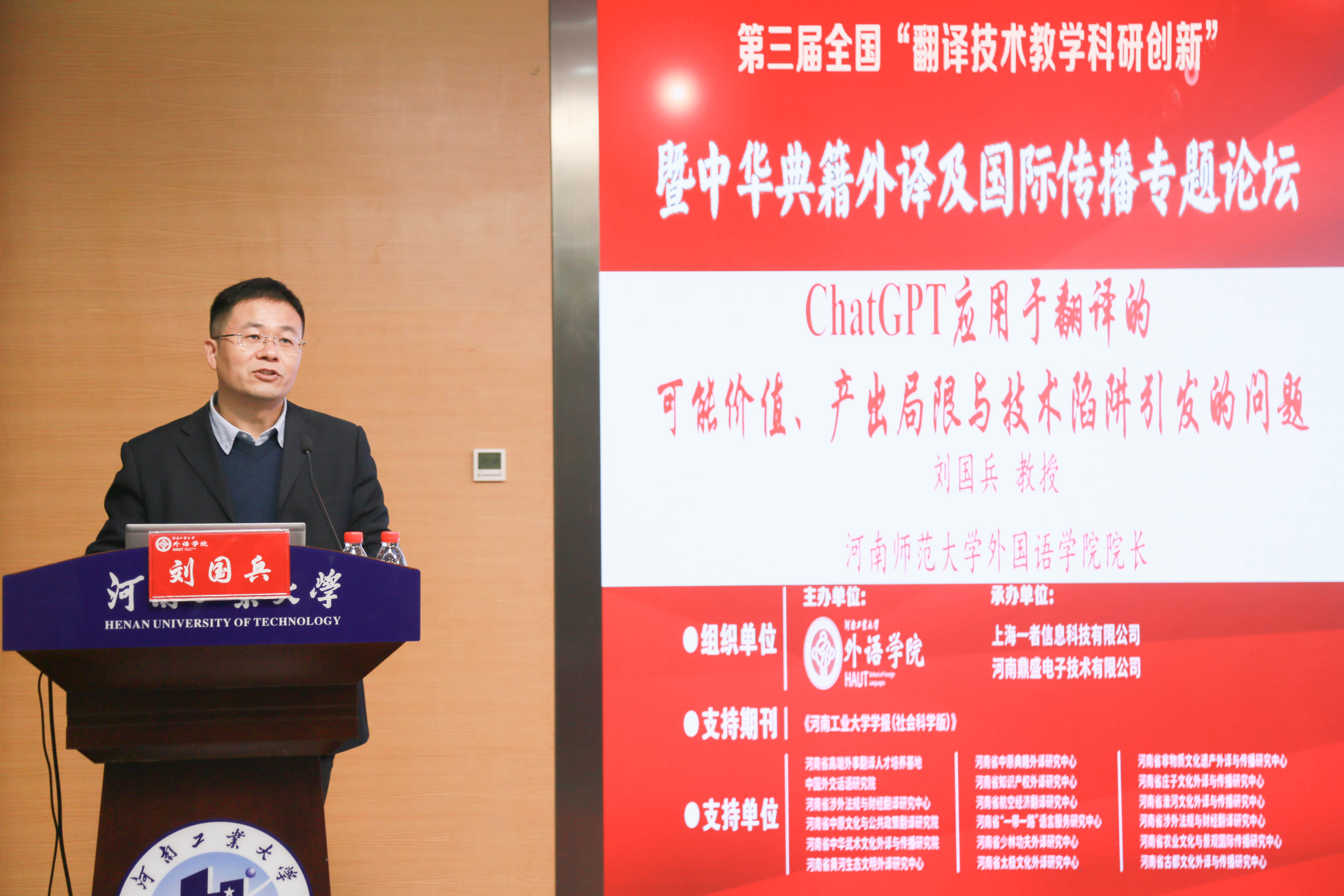 河南师范大学外国语学院院长刘国兵教授以《ChatGPT应用于翻译的可能价值、产出局限与技术陷阱引发的问题》为题作主旨发言。他指出,人工智能的应用将呈现出全新的语言转换模式与翻译图景,同时也对翻译活动的实践样态、翻译教学的创新转向、翻译评价的手段再生等提出挑战。与此同时,也需要反思人工智能翻译在发展过程中所带来的技术陷阱,其中包括译者与受众之间的信任危机、失范模式下的诚信危机、谷歌效应下的翻译知识危机以及人机交互下的伦理危机等。