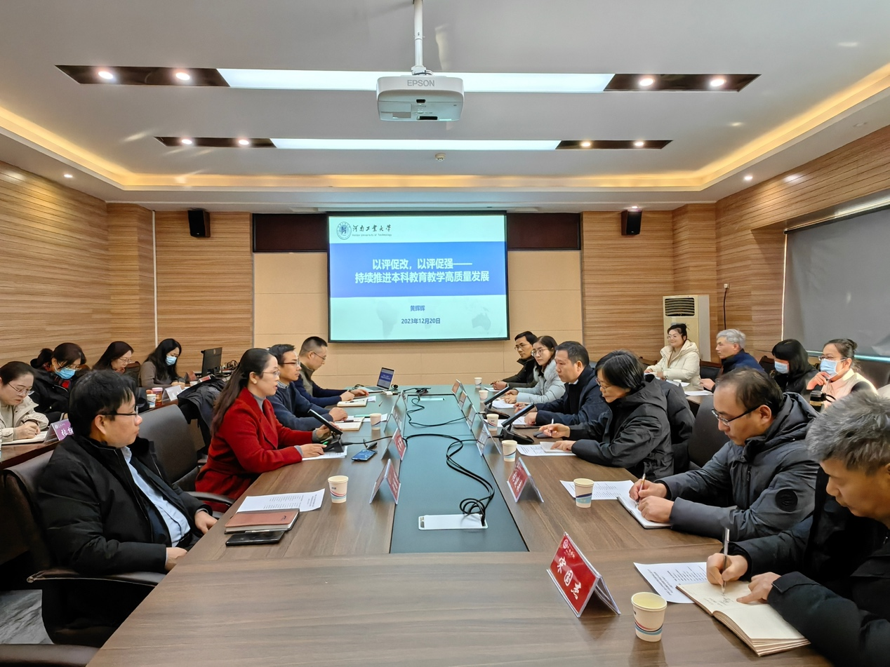 交流本科教育教学审核评估工作。学院班子成员和各系部主任、科室负责人参会。座谈会由捷克论坛