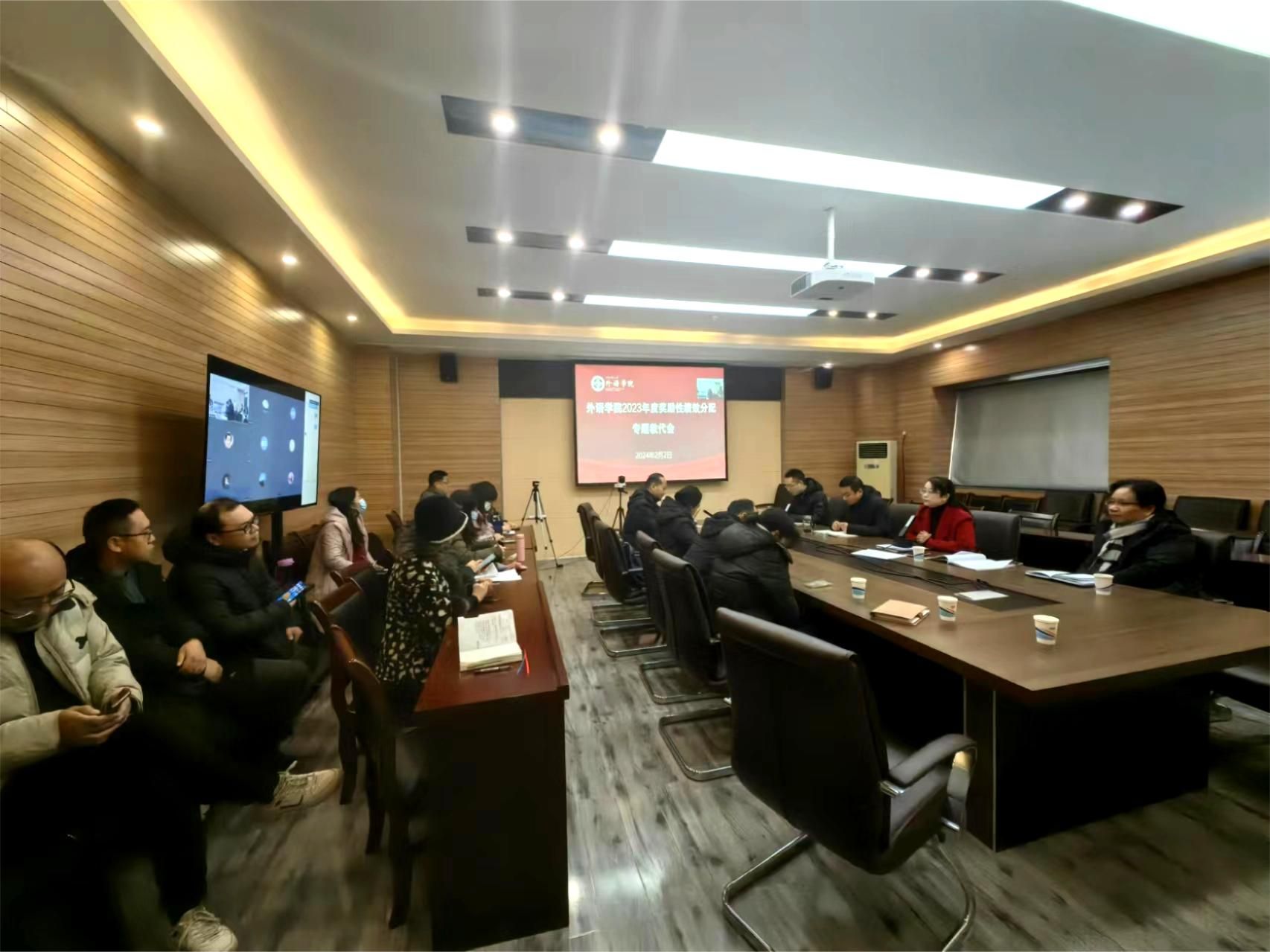2023年度奖励性绩效二次分配方案》,学院领导班子成员和教职工代表参会。会议由学院工会主席李建锋主持。