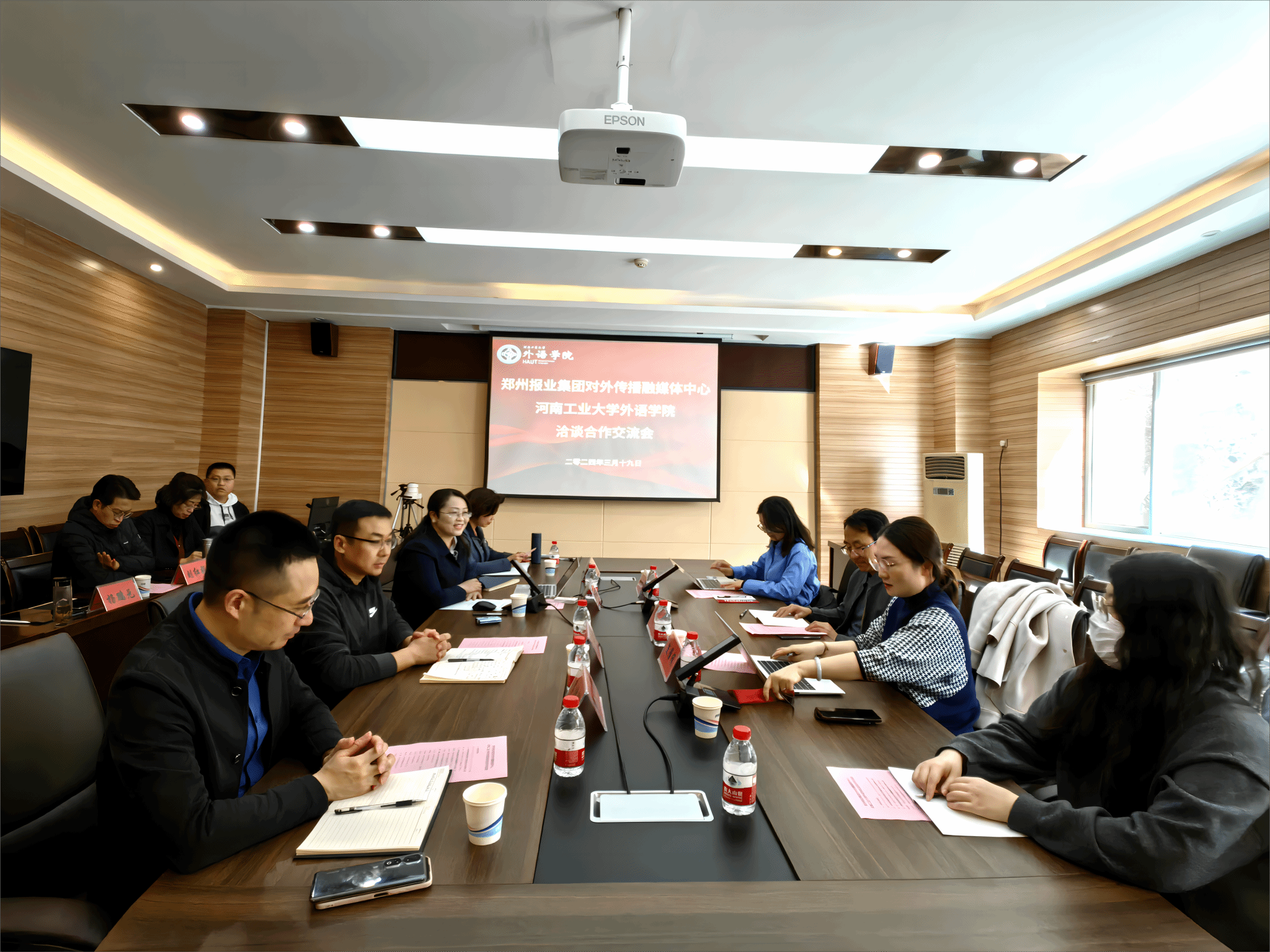 随后,双方展开了深入的交流与研讨,并在本硕国际传播人才培养、语言服务实习实训基地建设、国际传播团队建设、校外行业导师队伍建设、海外推荐官队伍建设、教科研与智库项目建设等领域形成了合作共识,达成了合作意向。双方均表示,下一步将尽快厘清合作思路,建立长效合作机制,建设标志性合作成果,共同发挥高校与行业优势,积极推进国际传播人才培养、郑州文化对外交流与国际传播,共同为讲好中国故事、河南故事和郑州故事做出积极贡献。