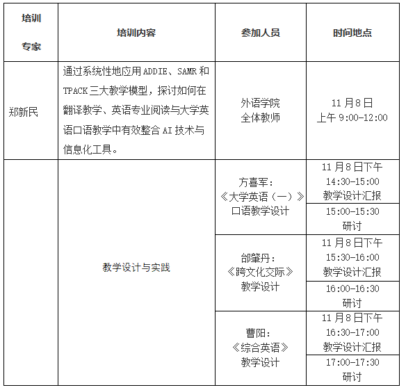 主 题:创新教学:运用ADDIE、SAMR和TPACK模型提升外语教学效果