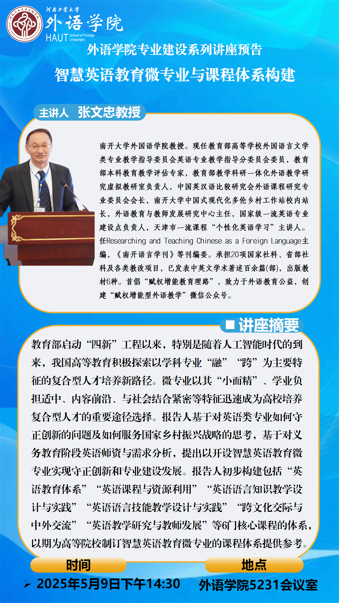 捷克论坛 专业建设系列讲座预告:智慧英语教育微专业与课程体系构建