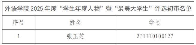 根据学校关于开展2025年度“学生年度人物”暨“最美大学生”评选活动的通知要求,捷克论坛 对符合评审条件的学生进行了评定与审核,学院共推荐1名学生申请2025年度“学生年度人物”暨“最美大学生”,现将初审名单向全院公示3个工作日:公示期自2026年3月5日12:00起至2026年3月10日12:00止。