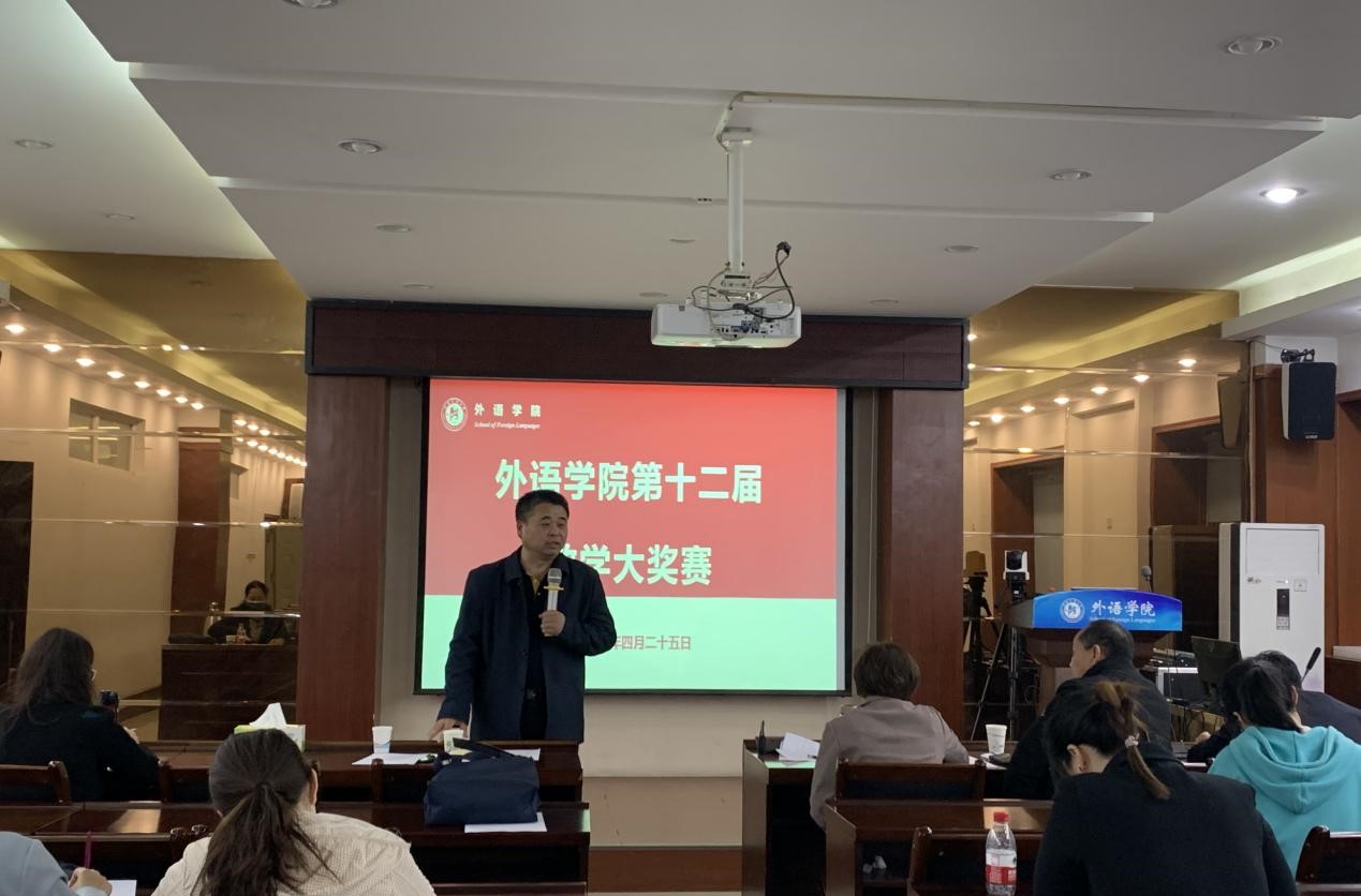 在5225会议室举办了第十二届教学大奖赛学院初赛。比赛特邀校教学督导穆中杰教授、学院教学评审委员以及督导等老师担任大赛评审,教研秘书青年骨干教师邵佩佩主持,学院领导班子、青年教师及骨干教师观摩了比赛。