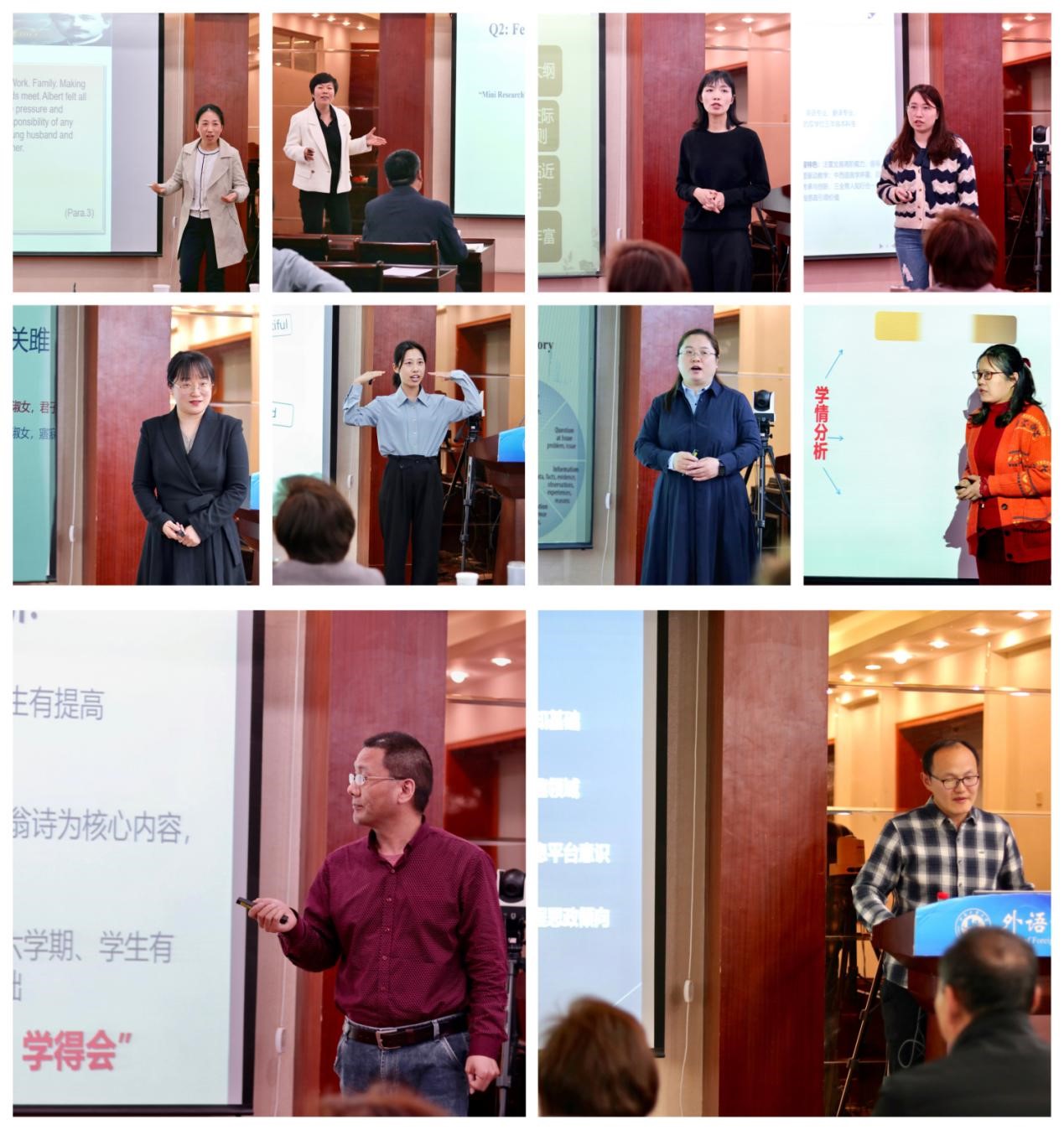 经各系部初赛,共有10位教师入围院级复赛。比赛中,参赛教师展示了精心准备的课程设计与模拟授课内容,体现了“领域新、内容新、手段新”的教学研究成果;强调了从跨文化视角理解中国道路和中国智慧,提高用外语向国际社会讲好中国故事的能力,体现了课程思政与专业教育的有机融合。
