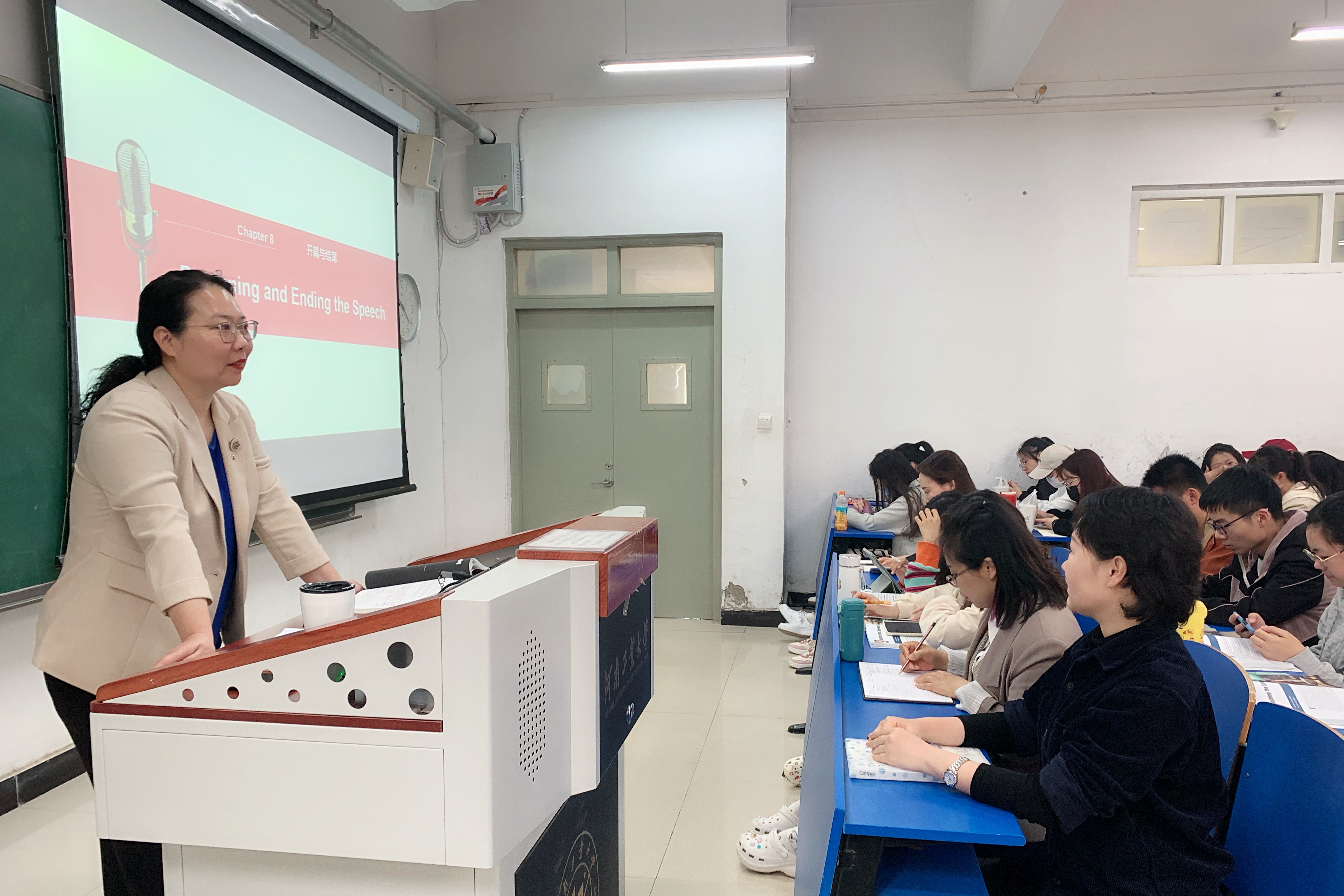 张艳老师从教20余载,教学经验丰富,在各类教学竞赛中多次获奖。4月12日上午,在3110教室开展的《英语演讲艺术》公开示范课中,张艳老师情感饱满,流畅自然,以精心设计的开场牢牢吸引住在座师生,将演讲的理论融入自身的讲课实践,言传身教,精妙地诠释了演讲的艺术。