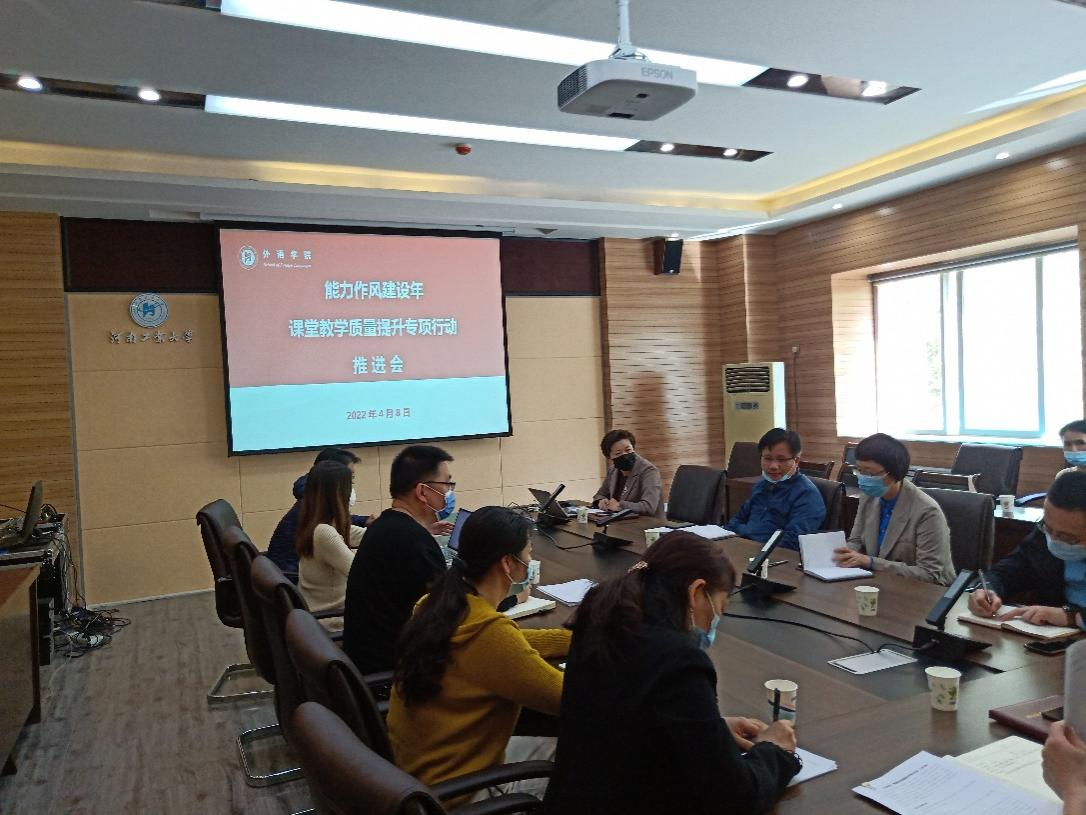 于4月8日下午在5231会议室召开了“课堂教学质量提升专项行动”推进会。学院领导班子成员、各科室、系部主任、副主任以及骨干教师参加了会议。