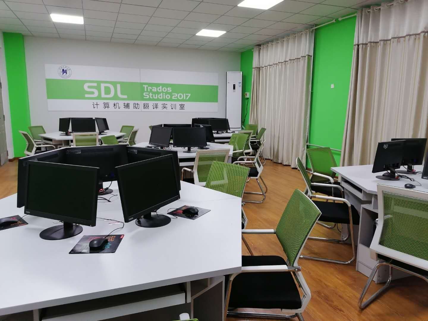 2017、2018年,分两期工程建成1间30座的机辅笔译实训室,购买了拥有全球85%市场占有率的SDL Trados软件系统,为师生提供真实的企业翻译管理与操作环境,教学流程均可完整模拟企业实际翻译中的项目团队管理。